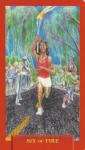 The Sixes from the Today’s Journey Tarot Deck all have to do with harmony and the stability of everything coming together – at least for a while. After the turmoil of change from the Fives, the Sixes are a time of overcoming difficulties and putting obstacles behind us. The Element expresses the different approaches this may take. For those driven by the Fire Element it means basking in success, the emotional Water Element just wants peace and quiet. The Element of the mind, Air packs up and moves on to a better way and the Earth Element finds that there is enough to share.